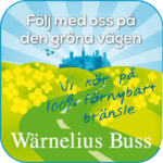 Våra bussar körs på fossilfritt bränsle – HVO Hydrogenated Vegetable Oil. Bränslet är en syntetisk diesel som i huvudsak framställs av organiskt avfall. Det unika är att den inte innehåller några fossila ingredienser. Klimatpåverkan jämfört med fossil diesel minskas med upp till hela 90 %. En annan fördel med HVO är att den har renare avgaser än vanlig diesel. Genom att välja våra bussar på en resa till Stockholm, istället för bussar som körs på vanlig diesel, så minskar ni utsläppen av CO2 med ca 303 kg!